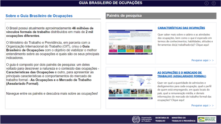 En este sentido, se destaca que el Ministerio de Trabajo y Seguridad Social de Brasil y la Organización Internacional del Trabajo (OIT) lanzaron la Guía nacional de cualificaciones de Brasil, que se presenta en un formato innovador y como una verdadera guía de ocupaciones, con información actualizada, características y principales indicadores de 2.609 ocupaciones existentes en el mercado laboral brasileño.