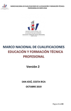 Marco Nacional de Cualificaciones Educación y Formación Técnica Profesional de Costa Rica - Versión 2