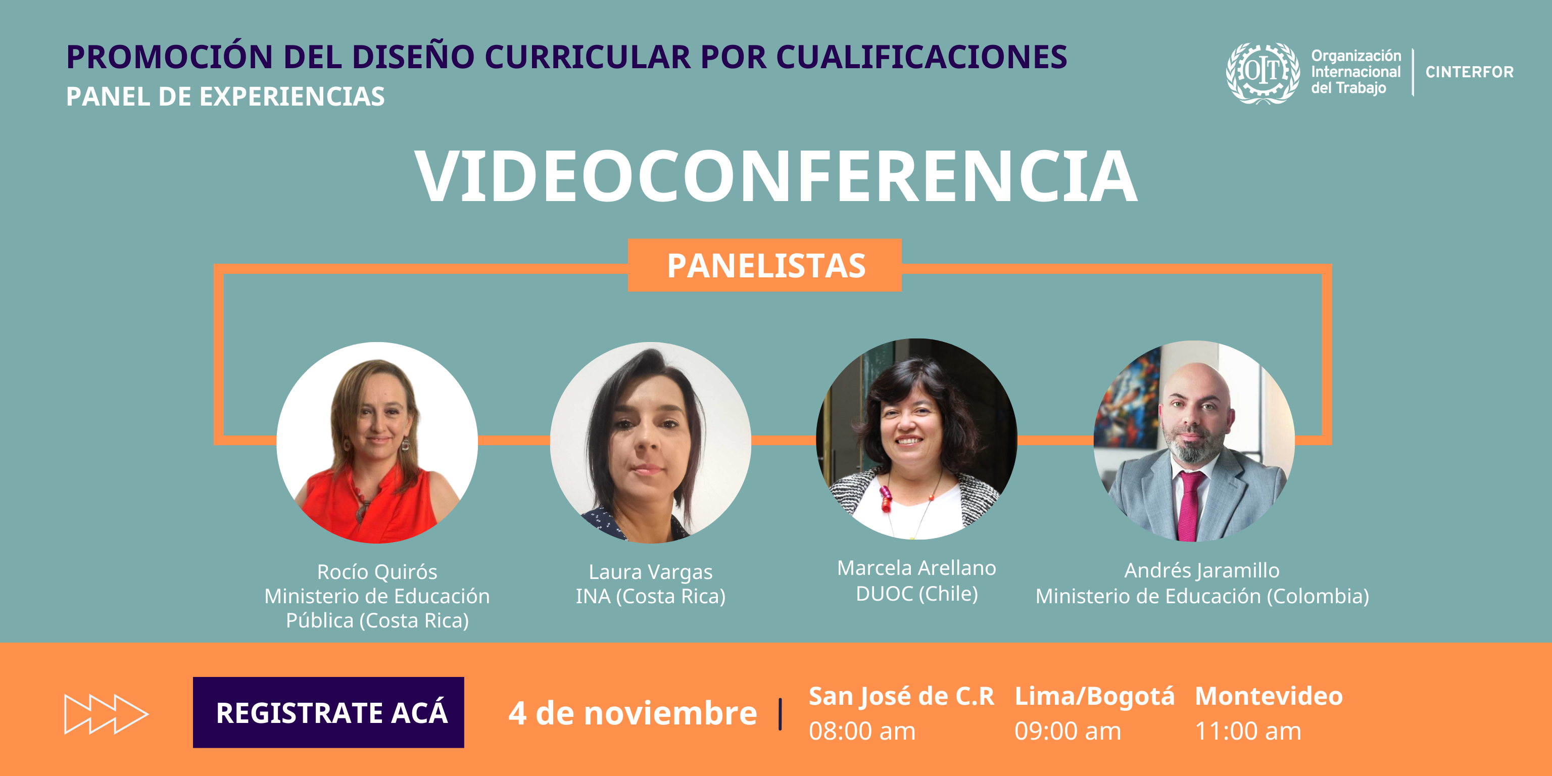 El viernes 4 de noviembre se coordinó y facilitó un panel de experiencias sobre la promoción del diseño curricular por cualificaciones, con la participación de Costa Rica, Chile y Colombia. Esta actividad se da en el marco del curso que está llevando adelante Cinterfor: Diseño curricular en los marcos de cualifcaciones.