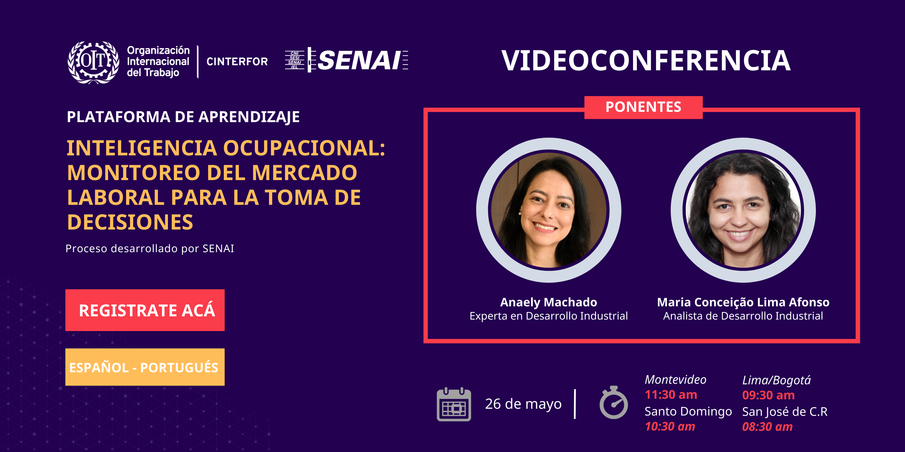 La presentación de la experiencia desarrollada por SENAI de Brasil estuvo a cargo de Anaely Machado, Experta en Desarrollo Industrial y Maria Conceição Lima Afonso, Analista de Desarrollo Industrial, quienes junto a Marcello Pío, Especialista de Desarrollo Industrial de SENAI, compartieron los pilares conceptuales y teóricos del proceso "inteligencia ocupacional" desarrollado por SENAI.